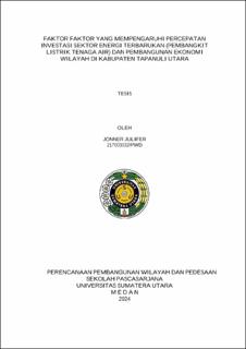 Faktor Faktor yang Mempengaruhi Percepatan Investasi Sektor Energi Terbarukan (Pembangkit Listrik Tenaga Air) dan Pembangunan Ekonomi Wilayah di Kabupaten Tapanuli Utara