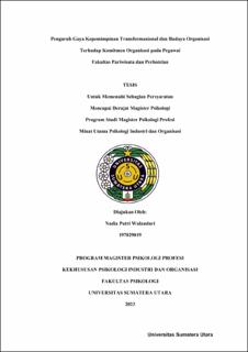 Pengaruh Gaya Kepemimpinan Transformasional dan Budaya Organisasi terhadap Komitmen Organisasi pada Pegawai Fakultas Pariwisata dan Perhotelan