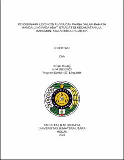This research discusses the use of the flora and fauna lexicon in the Mandailing language in Ulu Barumun Regency, which is motivated by the people's knowledge and understanding of their customs, which reflect the philosophical meaning of their customs. This research shows the close relationship between the community and the natural surroundings, the relationship between speakers and their relationship with the natural environment, and the social environment, which produces a variety of languages. This research uses the ecolinguistic theory by Bang and Door (2000), which suggests that language is understood as a social practice or manifestation of human social activity. The problem formulation developed in this research is as follows: 1. What is the flora and fauna lexicon in the Mandailing language used in customs in Ulu Barumun Regency? 2. What are the philosophical meanings of customs in Ulu Barumun Regency in using the flora and fauna lexicon in the Mandailing language? 3. What is the community's understanding of the flora and fauna lexicon in the Mandailing language, as well as the philosophical meaning of preserving customs? This research aims to categorize the flora and fauna lexicon in Mandailing language used in customs in Ulu Barumun Regency, interpret the philosophical meaning of customs in Ulu Barumun Regency in the use of flora and fauna lexicon in Mandailing language, and relate the understanding of the people in Ulu Barumun Regency to the lexicon of flora and fauna in the Mandailing language as well as the philosophical meaning of preserving customs. The method used in this research is ethnography, which is mixed research or mixed methods. The data in this research is a lexicon of flora and fauna in the Mandailing language used in customs in Ulu Barumun Regency. This research data collection technique consists of observation techniques, interviews, and questionnaires. Observation techniques were used to learn about the implementation of customs; interview techniques were used to obtain data on the flora and fauna lexicon used and the philosophical meaning of customs in Ulu Barumun Regency, Padang Lawas in Mandailing language. At the same time, questionnaires were distributed to determine the community's understanding of the lexicon. Flora and fauna are used in the Mandailing language in its customs. The results of the analysis are presented descriptively. Through this research, the researcher concluded that there are 50 uses of the flora and fauna lexicon in the Mandailing language in the customs in Ulu Barumun Regency, which are closely related to nature which is analogous to a situation seen and obtained through the people's mindset or understanding of various events encountered in life. , and 27 customs reflect philosophical meanings that provide blessing values in life so that they are used as guidelines by the people, both individually and in social groups, that describe the relationship between humans and the Creator and human relationships with fellow living creatures found in the natural surroundings.